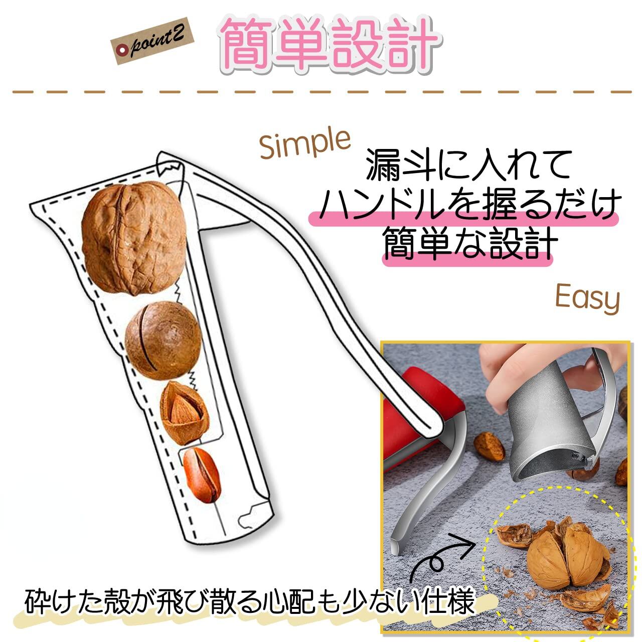 キッチンでの必需品、使いやすいナッツクラッカーです。このクラッカーは、様々な種類のナッツを手軽に割ることができ、特に自宅でおいしいスナックを楽しみたい方にぴったりのアイテムです。エレガントで機能的なデザインにより、力を入れることなく、スムーズにナッツを割ることができます!耐久性に優れた素材を使用しているため、長く安心してご使用いただけます